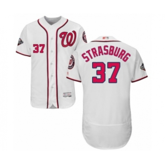 Men's Washington Nationals #37 Stephen Strasburg White Home Flex Base Authentic Collection 2019 World Series Bound Baseball Jersey