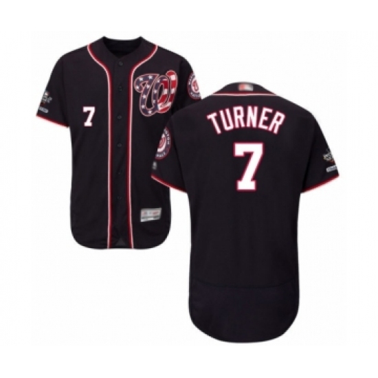 Men's Washington Nationals #7 Trea Turner Navy Blue Alternate Flex Base Authentic Collection 2019 World Series Champions Baseball Jersey