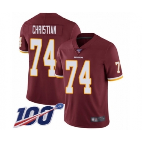 Men's Washington Redskins #74 Geron Christian Burgundy Red Team Color Vapor Untouchable Limited Player 100th Season Football Jersey