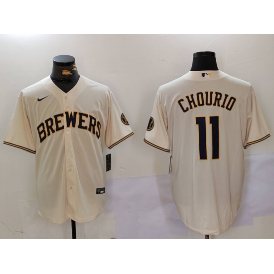 >Milwaukee Brewers #11 Jackson Chourio Cream Stitched Cool Base Nike Jersey
