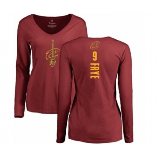 >NBA Women's Nike Cleveland Cavaliers #9 Channing Frye Maroon Backer Long Sleeve T-Shirt