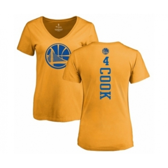 >NBA Women's Nike Golden State Warriors #4 Quinn Cook Gold One Color Backer Slim-Fit V-Neck T-Shirt