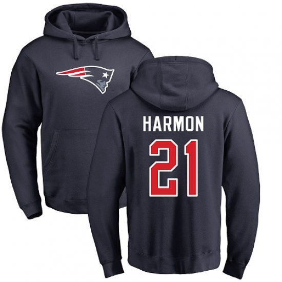 NFL Nike New England Patriots #21 Duron Harmon Navy Blue Name & Number Logo Pullover Hoodie