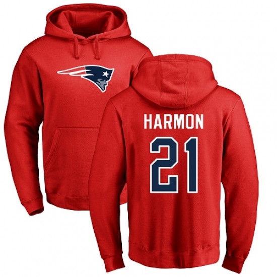 >NFL Nike New England Patriots #21 Duron Harmon Red Name & Number Logo Pullover Hoodie