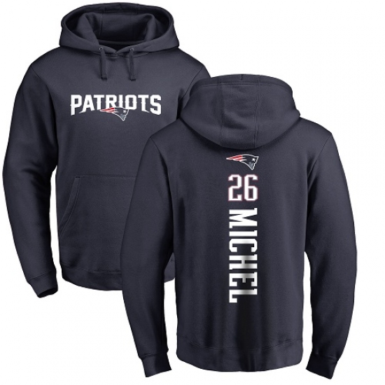 NFL Nike New England Patriots #26 Sony Michel Navy Blue Backer Pullover Hoodie
