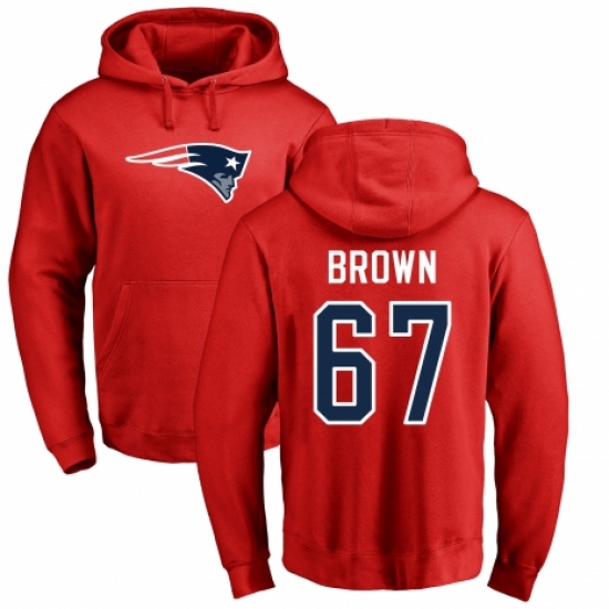 NFL Nike New England Patriots #67 Trent Brown Red Name & Number Logo Pullover Hoodie