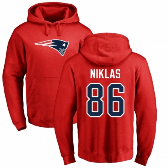>NFL Nike New England Patriots #86 Troy Niklas Red Name & Number Logo Pullover Hoodie