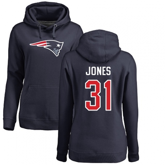 >NFL Women's Nike New England Patriots #31 Jonathan Jones Navy Blue Name & Number Logo Pullover Hoodie
