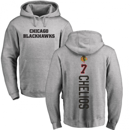 NHL Adidas Chicago Blackhawks #7 Chris Chelios Ash Backer Pullover Hoodie