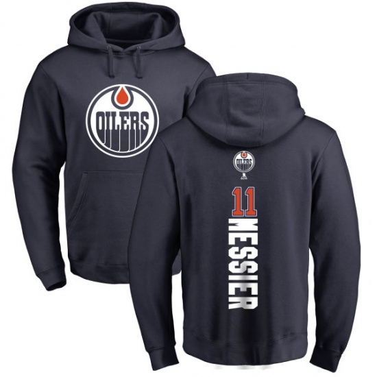 Home>NHL>Edmonton Oilers>Mark Messier>NHL Adidas Edmonton Oilers #11 Mark Messier Navy Blue Backer Pullover Hoodie