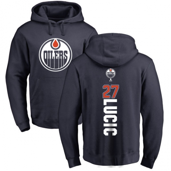 Home>NHL>Edmonton Oilers>Milan Lucic>NHL Adidas Edmonton Oilers #27 Milan Lucic Navy Blue Backer Pullover Hoodie