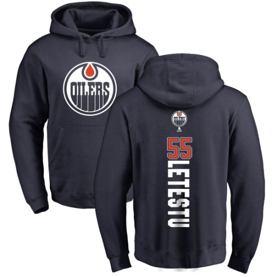 NHL Adidas Edmonton Oilers #55 Mark Letestu Navy Blue Backer Pullover Hoodie