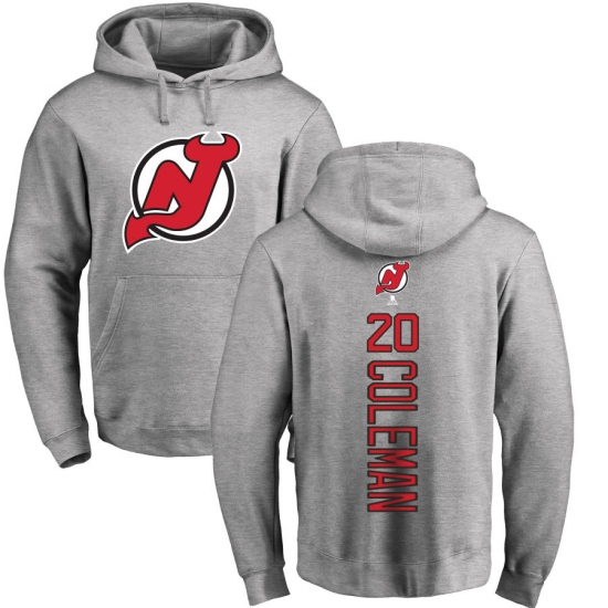 >NHL Adidas New Jersey Devils #20 Blake Coleman Ash Backer Pullover Hoodie