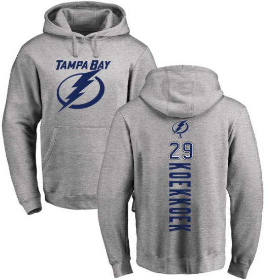 NHL Adidas Tampa Bay Lightning #29 Slater Koekkoek Ash Backer Pullover Hoodie