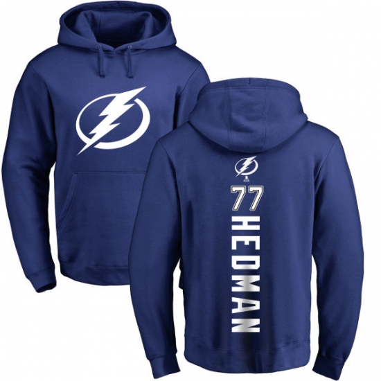 NHL Adidas Tampa Bay Lightning #77 Victor Hedman Royal Blue Backer Pullover Hoodie