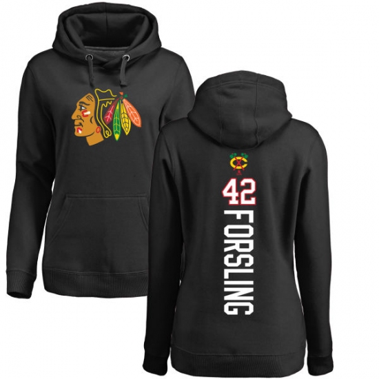 Home>NHL>Chicago Blackhawks>Gustav Forsling>NHL Women's Adidas Chicago Blackhawks #42 Gustav Forsling Black Backer Pullover Hoodie