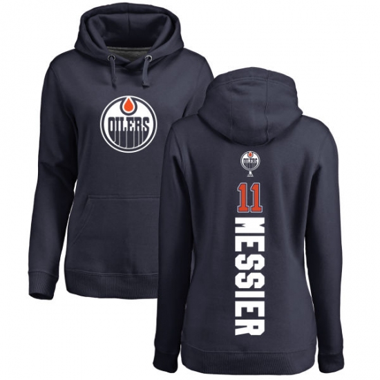 Home>NHL>Edmonton Oilers>Mark Messier>NHL Women's Adidas Edmonton Oilers #11 Mark Messier Navy Blue Backer Pullover Hoodie