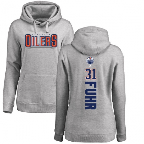 NHL Women's Adidas Edmonton Oilers #31 Grant Fuhr Ash Backer Pullover Hoodie