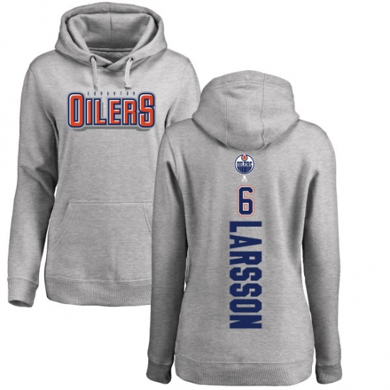 NHL Women's Adidas Edmonton Oilers #6 Adam Larsson Ash Backer Pullover Hoodie