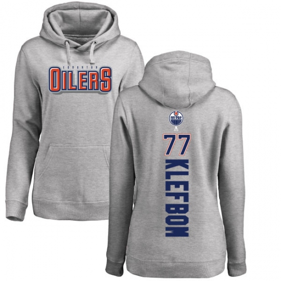 NHL Women's Adidas Edmonton Oilers #77 Oscar Klefbom Ash Backer Pullover Hoodie
