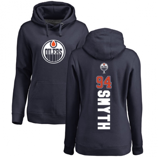 Home>NHL>Edmonton Oilers>Ryan Smyth>NHL Women's Adidas Edmonton Oilers #94 Ryan Smyth Navy Blue Backer Pullover Hoodie