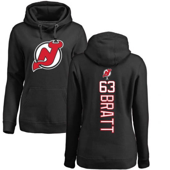 Home>NHL>New Devils Jersey>Jesper Bratt>NHL Women's Adidas New Jersey Devils #63 Jesper Bratt Black Backer Pullover Hoodie