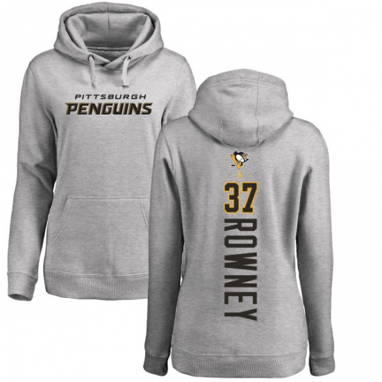 NHL Women's Adidas Pittsburgh Penguins #37 Carter Rowney Ash Backer Pullover Hoodie