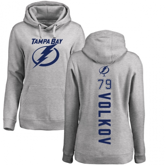 Home>NHL>Tampa Bay Lightning>Alexander Volkov>NHL Women's Adidas Tampa Bay Lightning #79 Alexander Volkov Ash Backer Pullover Hoodie