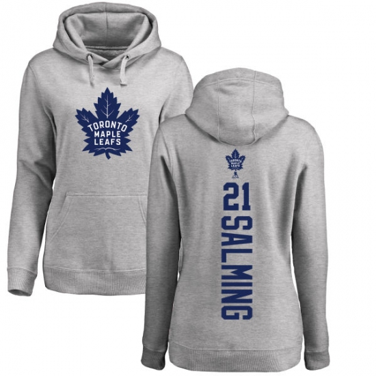 Home>NHL>Toronto Maple Leafs>Borje Salming>NHL Women's Adidas Toronto Maple Leafs #21 Borje Salming Ash Backer Pullover Hoodie