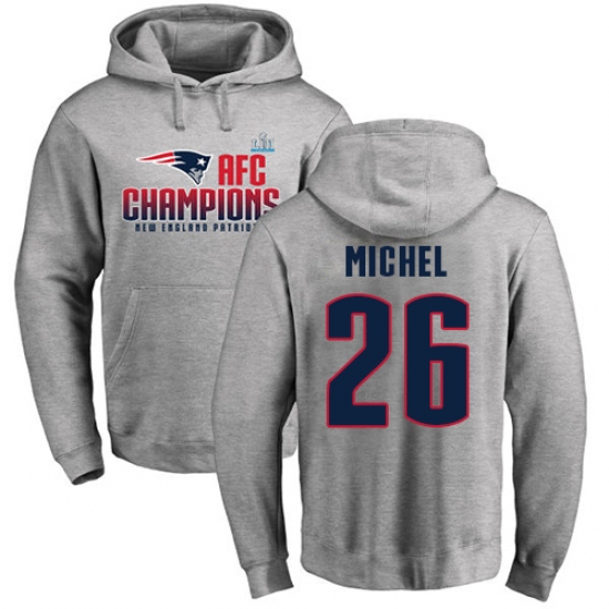 Nike New England Patriots #26 Sony Michel Heather Gray 2017 AFC Champions Pullover Hoodie