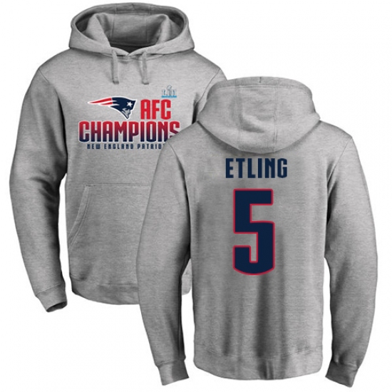 >Nike New England Patriots #5 Danny Etling Heather Gray 2017 AFC Champions Pullover Hoodie