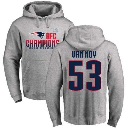 >Nike New England Patriots #53 Kyle Van Noy Heather Gray 2017 AFC Champions Pullover Hoodie