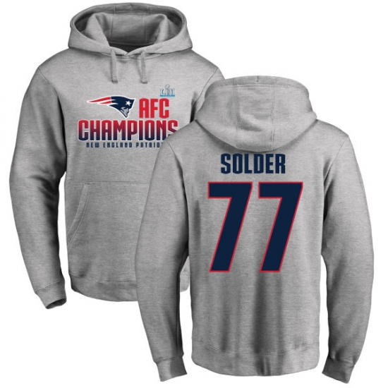 >Nike New England Patriots #77 Nate Solder Heather Gray 2017 AFC Champions Pullover Hoodie