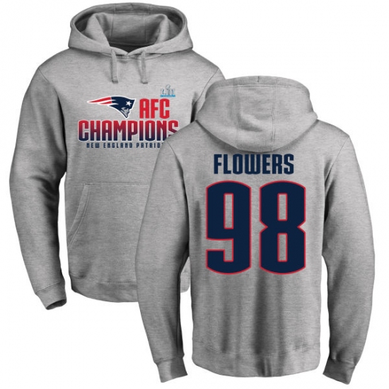 Nike New England Patriots #98 Trey Flowers Heather Gray 2017 AFC Champions Pullover Hoodie