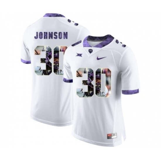 >TCU Horned Frogs 30 Denzel Johnson White With Portrait Print College Football Limited Jersey