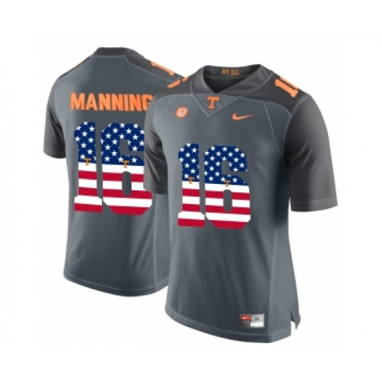 >Tennessee Volunteers 16 Peyton Manning Gray USA Flag College Football Jersey