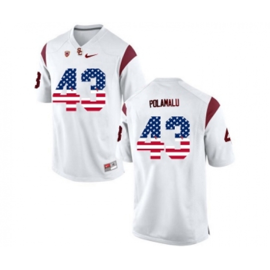 USC Trojans 43 Troy Polamalu White USA Flag College Football Jersey