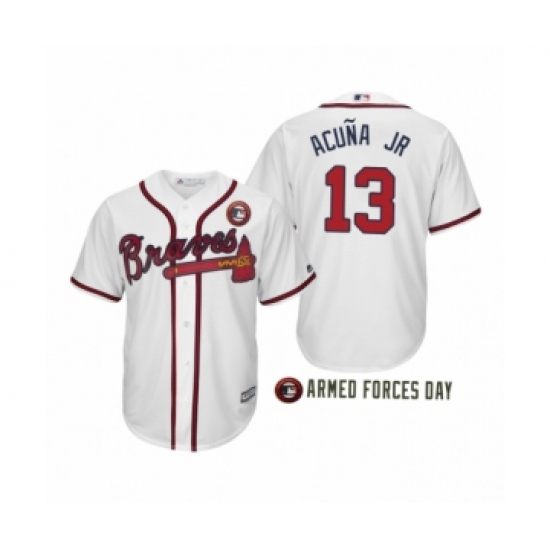 Women 2019 Armed Forces Day Ronald Acuna Jr. #13 Atlanta Braves White Cool Base Jersey