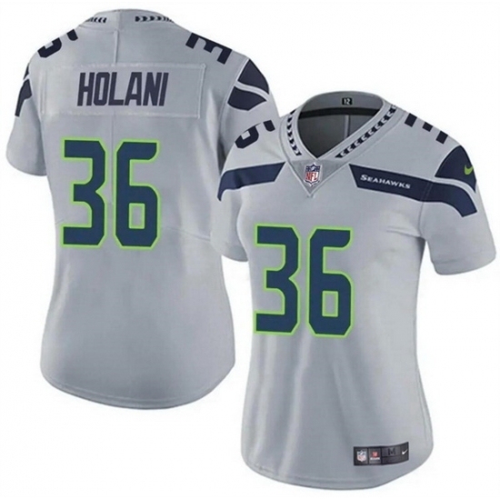 >Women Seattle Seahawks #36 George Holani Grey Vapor Limited Stitched Football Jersey
