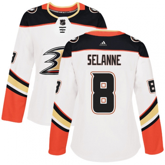 Women's Adidas Anaheim Ducks #8 Teemu Selanne Authentic White Away NHL Jersey