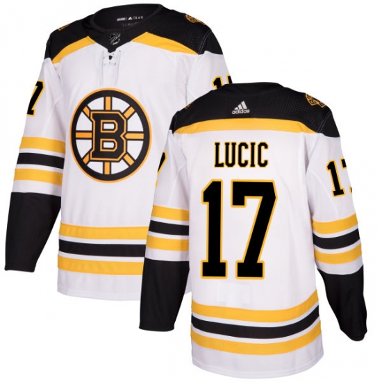 Women's Adidas Boston Bruins #17 Milan Lucic Authentic White Away NHL Jersey