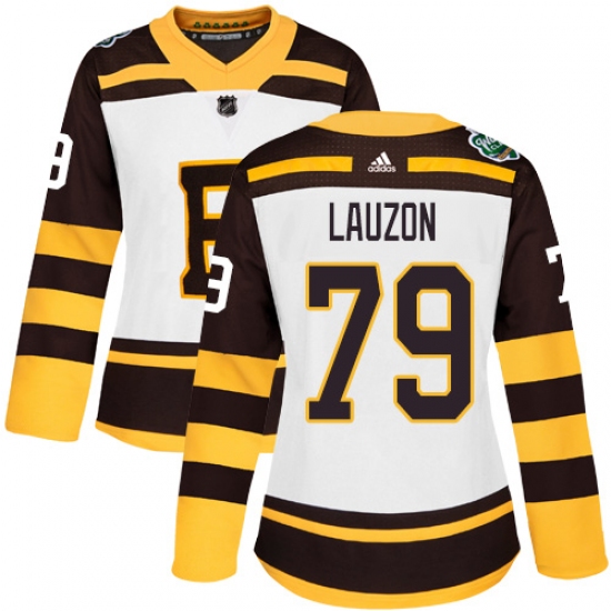 Women's Adidas Boston Bruins #79 Jeremy Lauzon Authentic White 2019 Winter Classic NHL Jersey