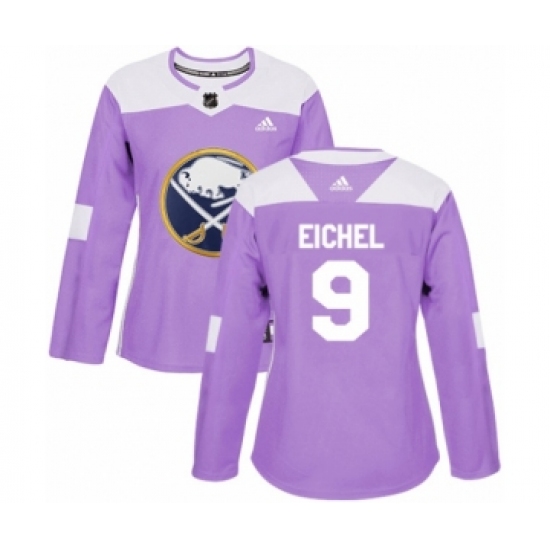 >Women's Adidas Buffalo Sabres #9 Jack Eichel Authentic Purple Fights Cancer Practice NHL Jersey