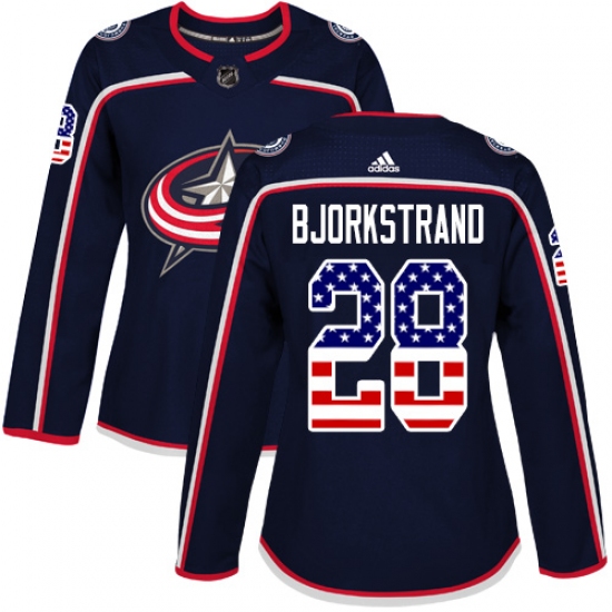 Home>NHL>Columbus Blue Jackets>Oliver Bjorkstrand>Women's Adidas Columbus Blue Jackets #28 Oliver Bjorkstrand Authentic Navy Blue USA Flag Fashion NHL Jersey