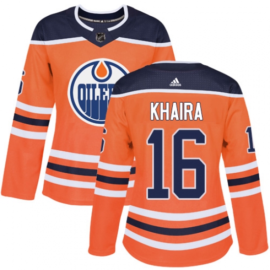 Home>NHL>Edmonton Oilers>Jujhar Khaira>Women's Adidas Edmonton Oilers #16 Jujhar Khaira Authentic Orange Home NHL Jersey