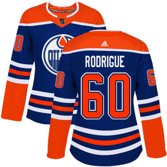 Women's Adidas Edmonton Oilers #60 Olivier Rodrigue Authentic Royal Blue Alternate NHL Jersey