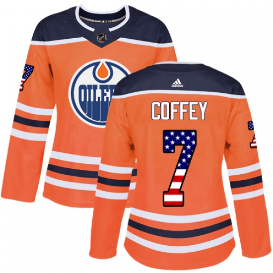 Home>NHL>Edmonton Oilers>Paul Coffey>Women's Adidas Edmonton Oilers #7 Paul Coffey Authentic Orange USA Flag Fashion NHL Jersey