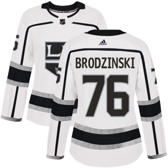 Women's Adidas Los Angeles Kings #76 Jonny Brodzinski Authentic White Away NHL Jersey