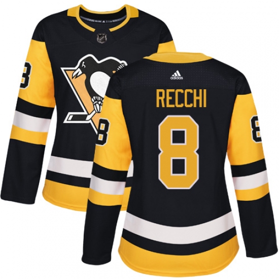Home>NHL>Pittsburgh Penguins>Mark Recchi>Women's Adidas Pittsburgh Penguins #8 Mark Recchi Authentic Black Home NHL Jersey