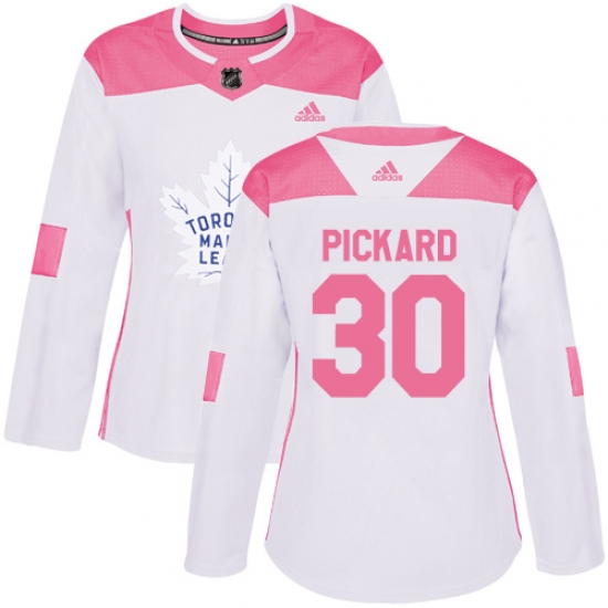 Women's Adidas Toronto Maple Leafs #30 Calvin Pickard Authentic White Pink Fashion NHL Jersey